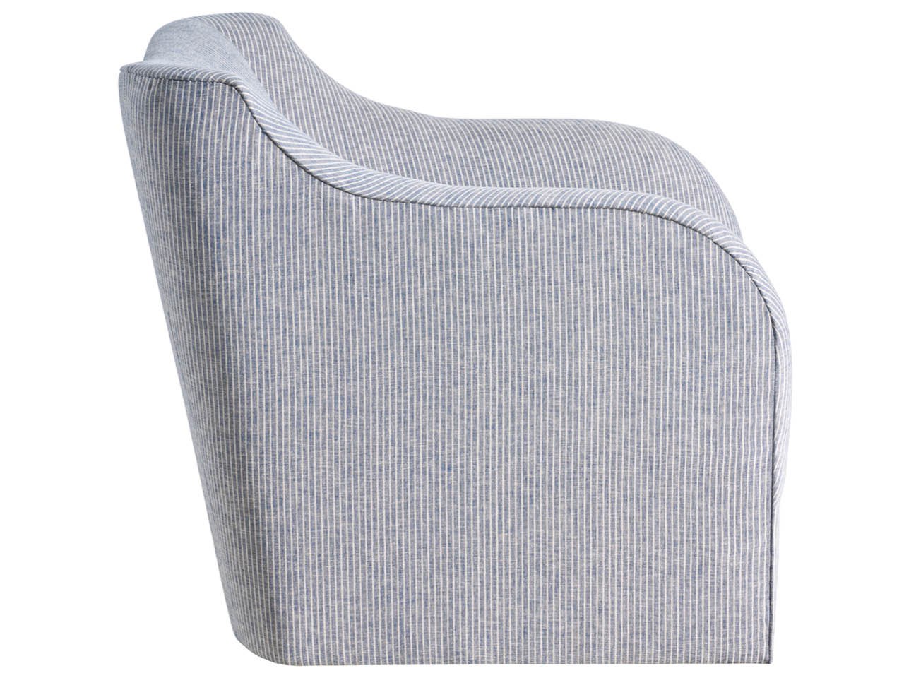 Camille Swivel Chair - Special Order (U586507)The gracefully curved frame of the Camille Swivel Chair rests on a discreet Lazy Susan mechanism, encouraging effortless movement and seamless conversation in any seating arrangement. Expertly crafted in the USA, this chic statement piece offers comprehensive contrast tailoring options, including the outside fabric panel, ensuring every detail is honed to your exact specifications.ChairsSwivel ChairsLiving RoomU586507