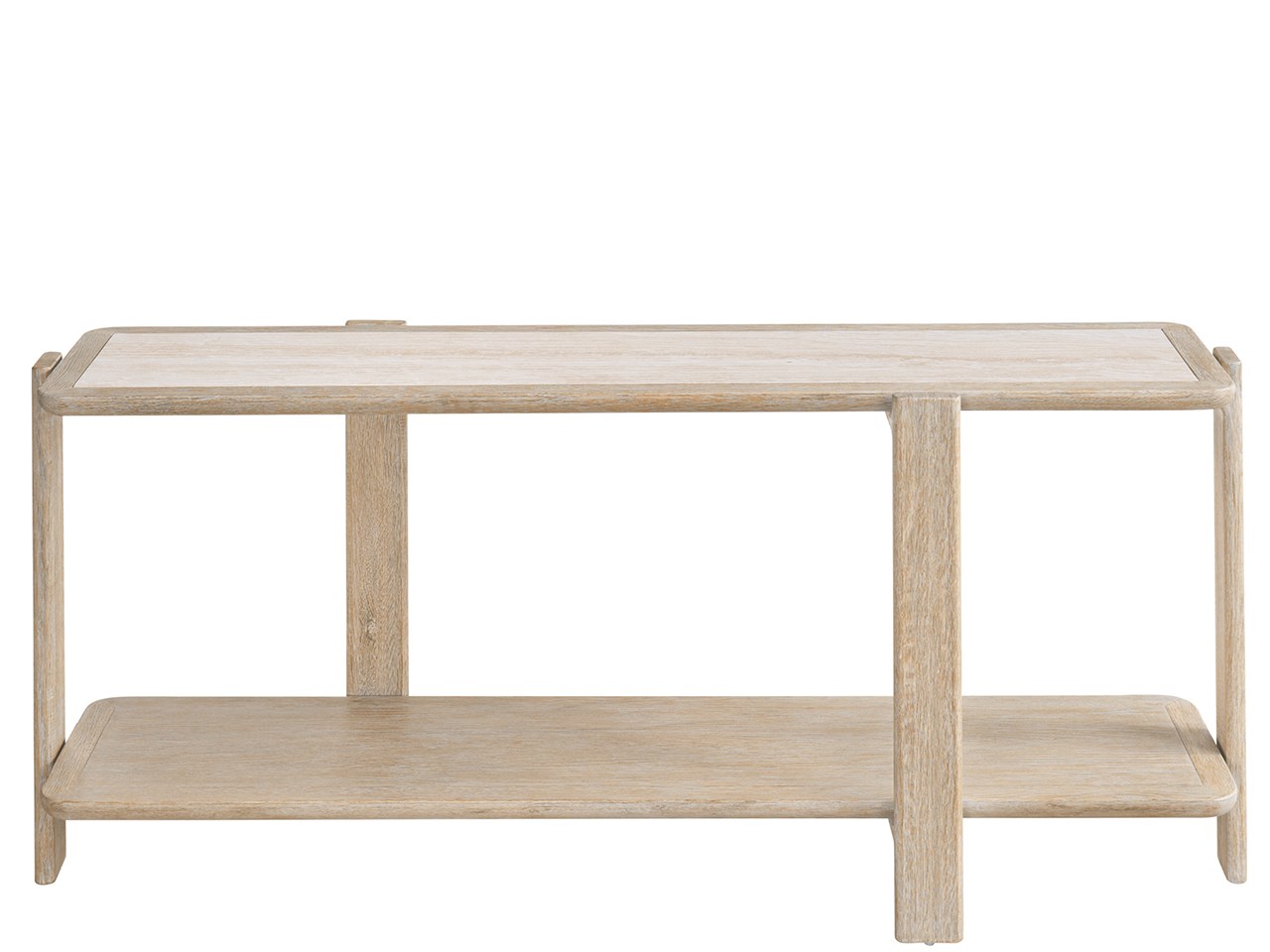 The Desert Console Table adds a touch of understated grandeur to any space. Its light, inviting Desert finish enhances the clean lines and open design, creating a visually appealing and functional piece.