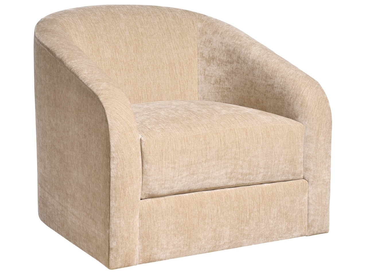 Dylan Swivel Chair -Special Order (U584507)The sculptural, enveloping form of the Dylan Swivel Chair makes it a perfect contemporary accent, designed to gently turn on its hidden base for effortless engagement. Expertly crafted in the USA, this piece is fully customizable, offering contrast tailoring, tufting and nailhead options to precisely match your interior design vision.ChairsLiving RoomU584507