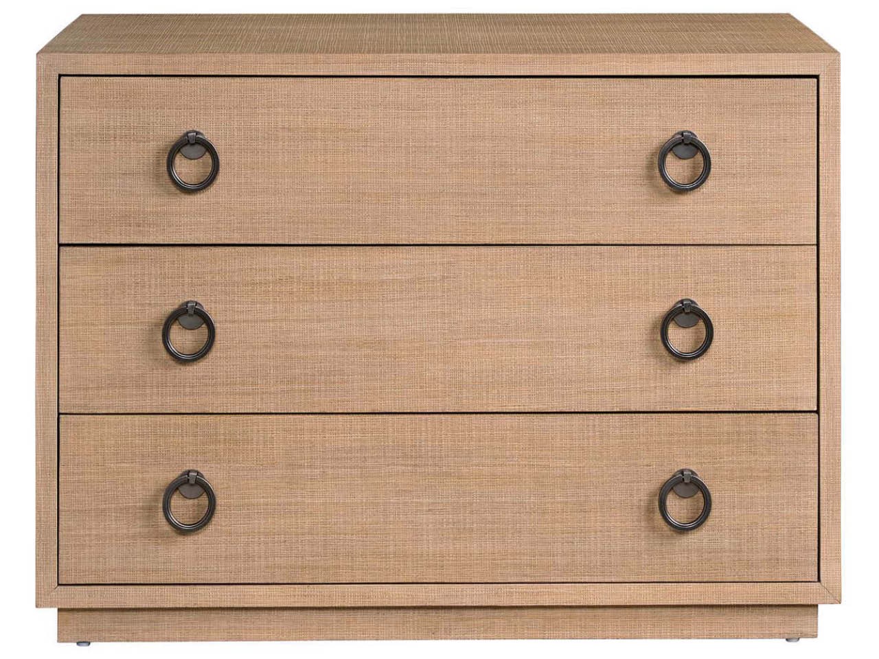 The Ghizzano Chest is a sophisticated blend of mid-century modern and contemporary design. Its three spacious drawers, adorned with sleek metal ring pulls, offer ample storage. The clean lines and Skylark finish create a refined aesthetic that complements a variety of interior styles.