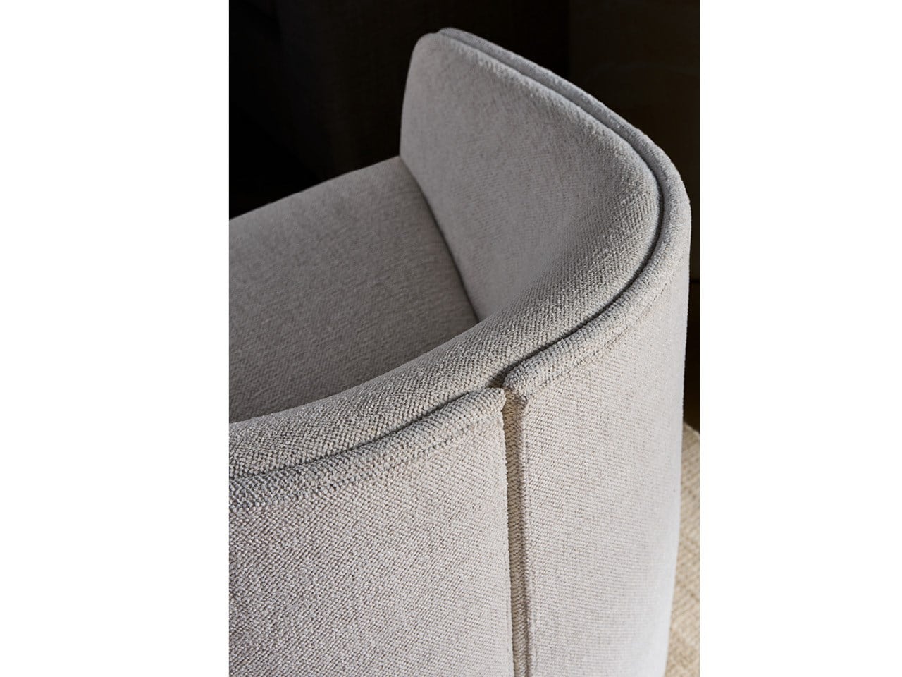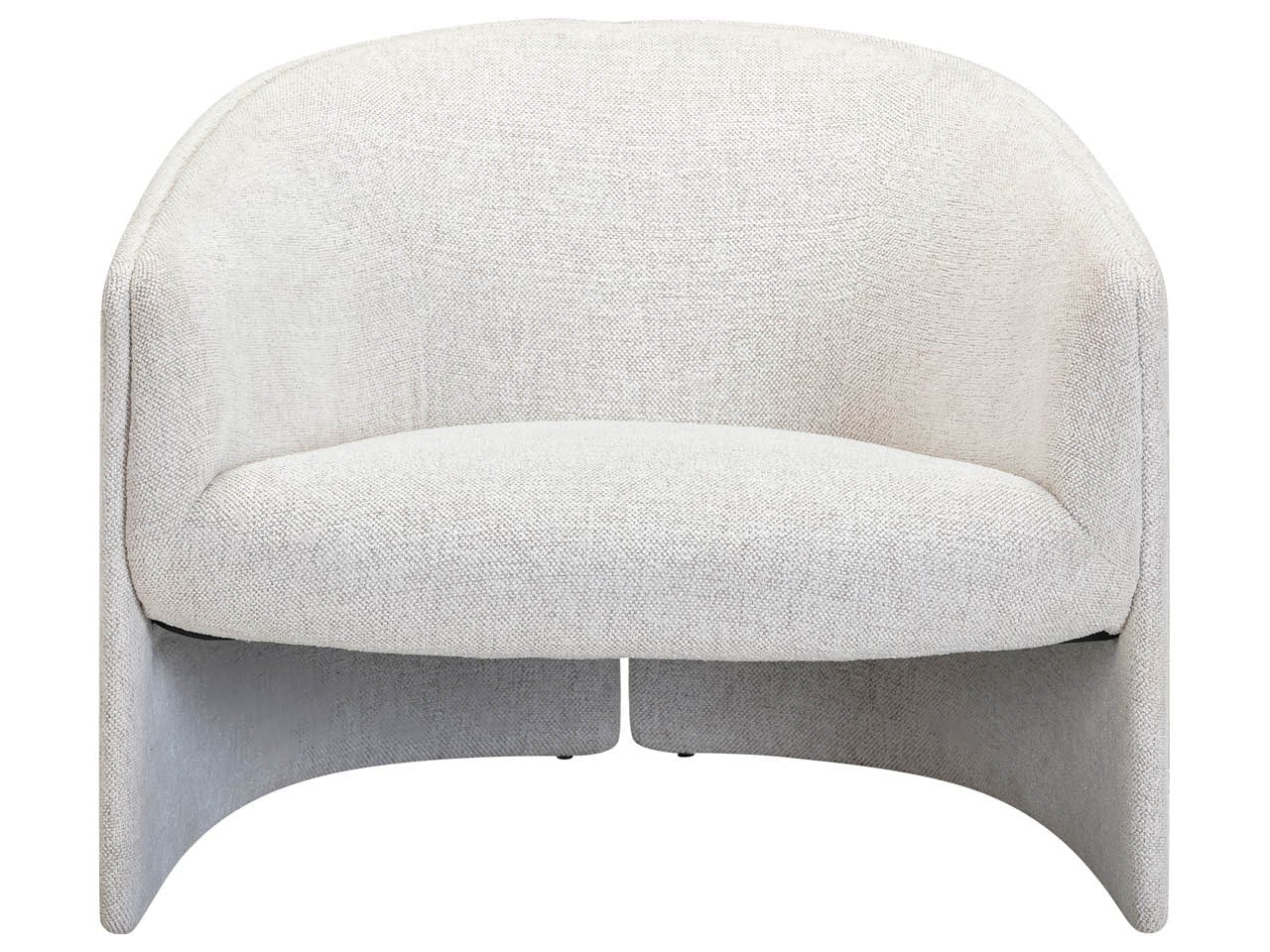 The Giorgi Chair is an exquisite accent piece with a distinctive, curved-back design that creates an intimate and welcoming profile. Finished in Neola Glacier, this chair offers a clean, architectural sit thanks to its carefully composed foam and fiber cushion filling.