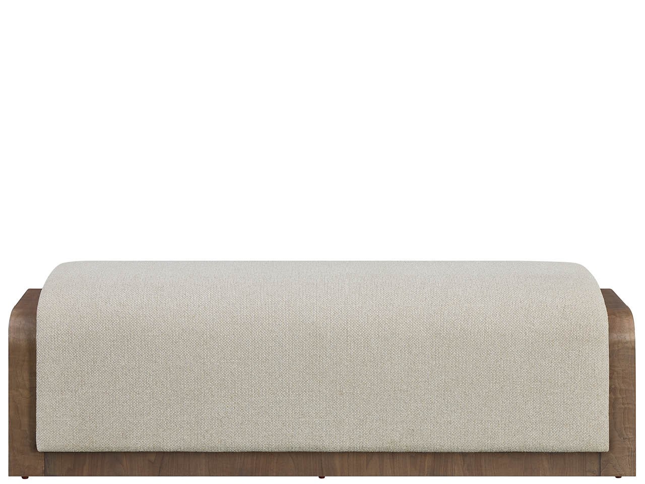 The Haze Bench is a luxurious seating piece entirely wrapped in figured Haze Walnut veneer. The long, clean-lined silhouette of the Haze Bench is topped with a cushioned seat in elegant Neve Linen fabric.