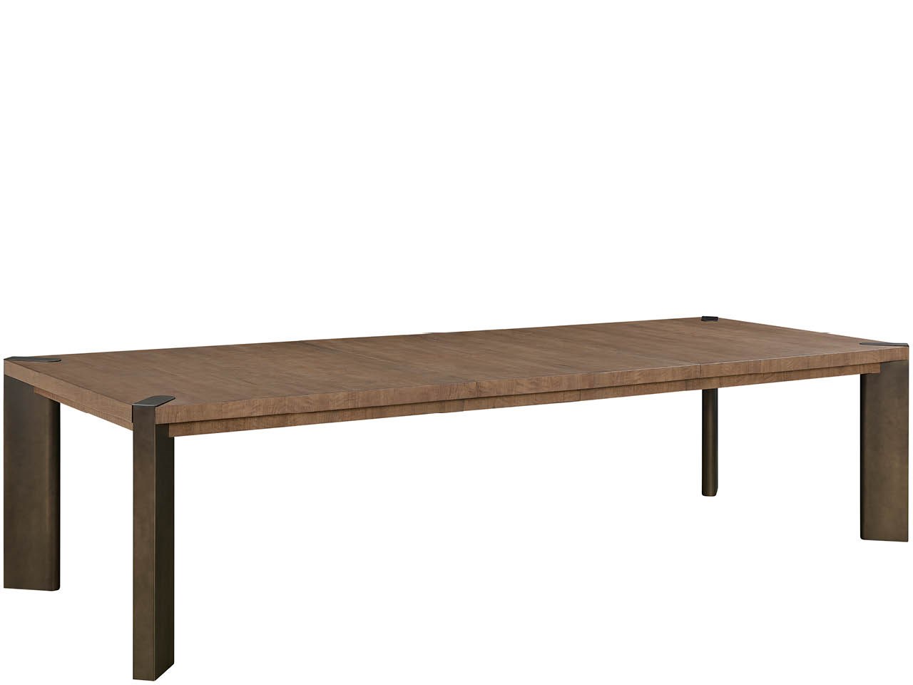 Designed for the host who commands attention, the Haze Dining Table features the dramatic, figured Haze Walnut finish accented by subtle Smoked Gold metal feet. This sophisticated piece expands effortlessly with two self-storing leaves, ensuring room for every intimate occasion.