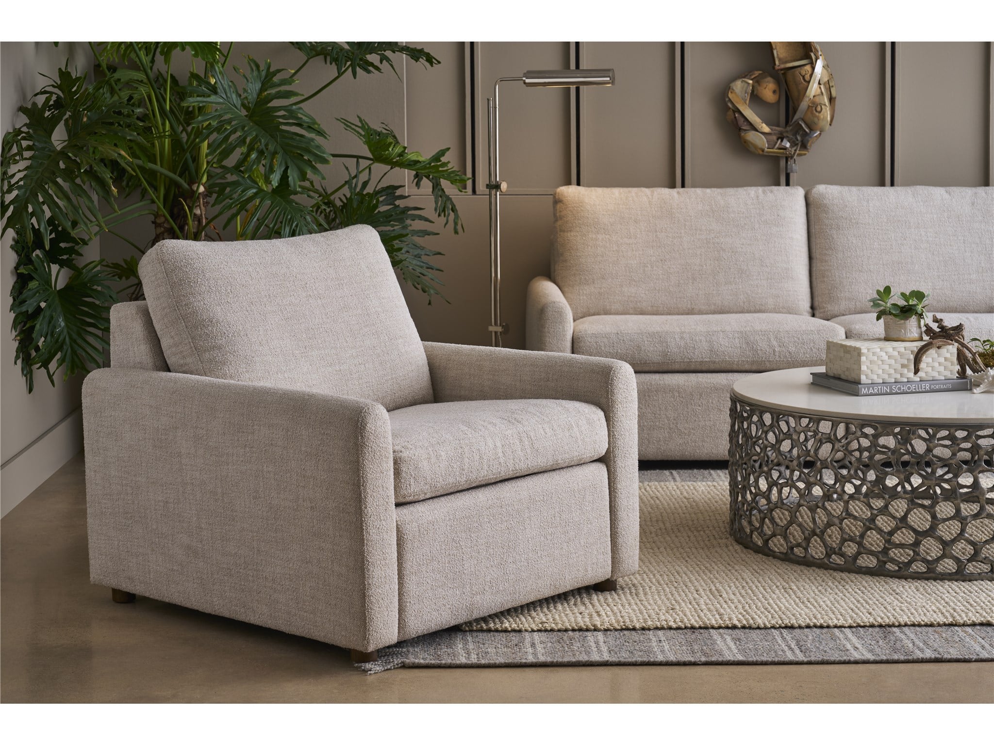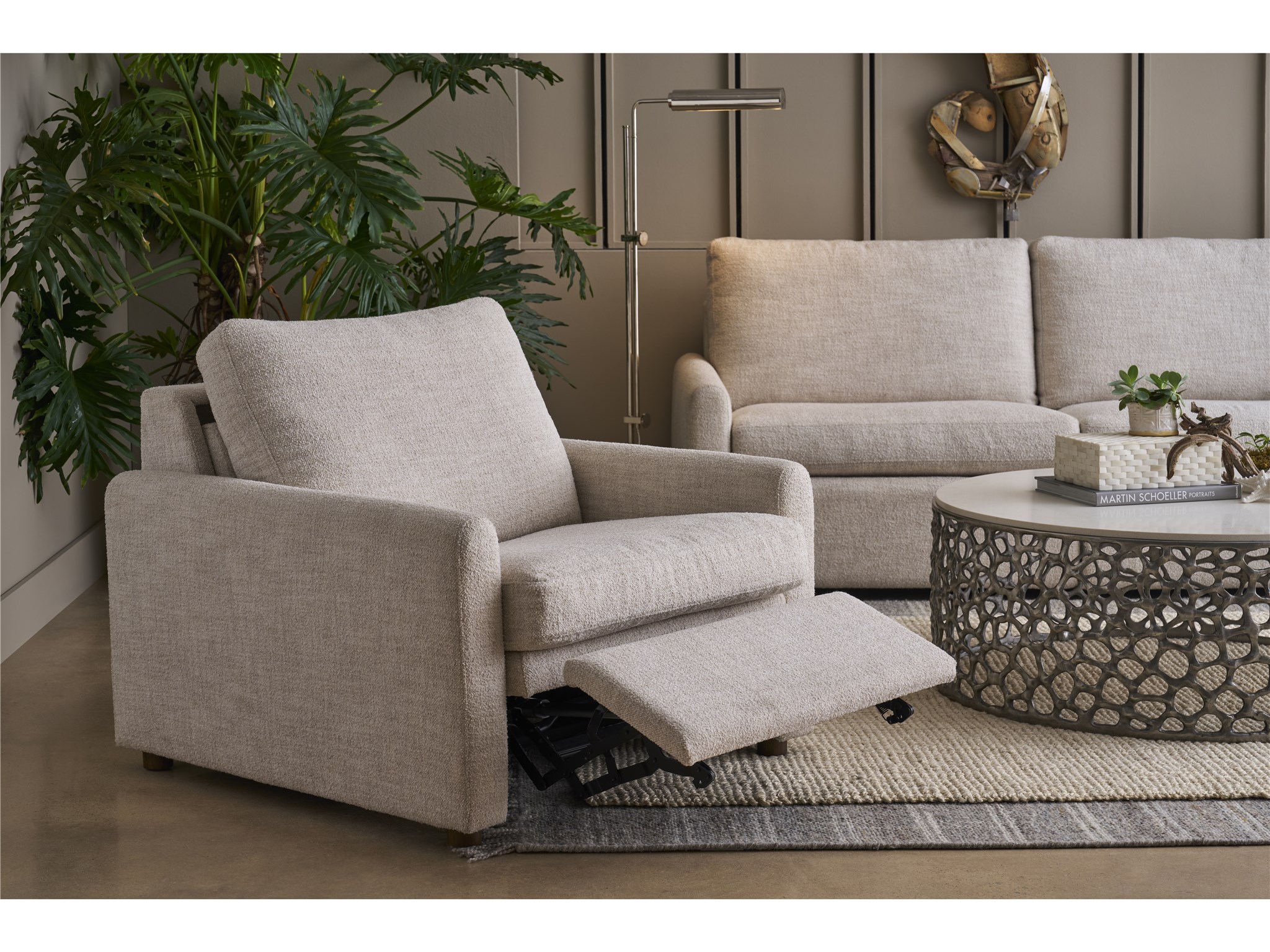 The Hyde Recliner pairs clean lines with inviting comfort. Upholstered in a versatile neutral fabric, its streamlined frame and deep, removable seat and back cushions make it a modern essential. Understated and adaptable, Hyde suits a range of interiors with ease and quiet sophistication.