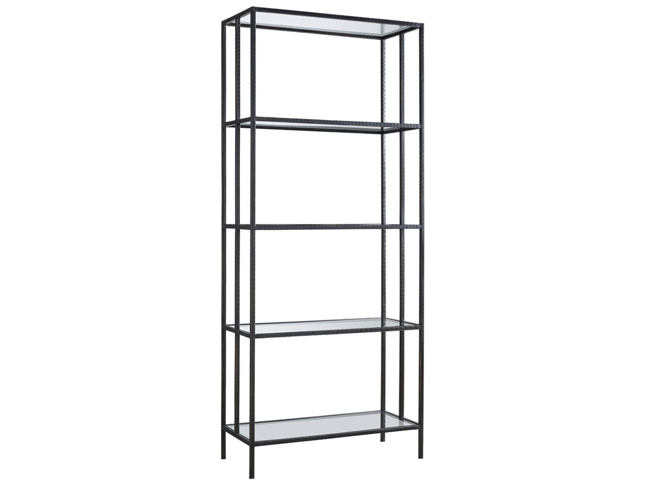 The Industrial Etagere offers a plethora of open-air storage space while simultaneously enriching spaces with its glass and metal material combination.