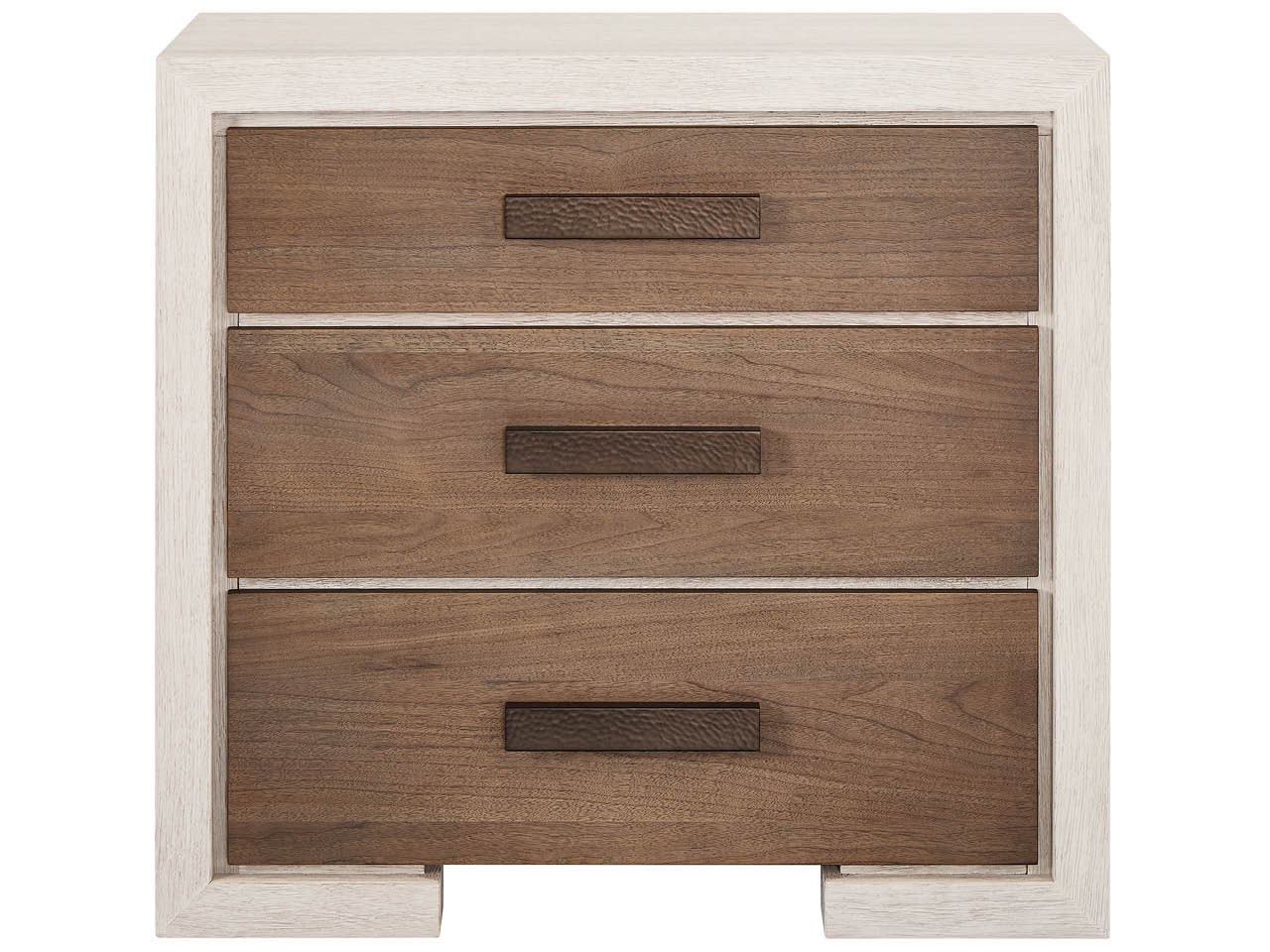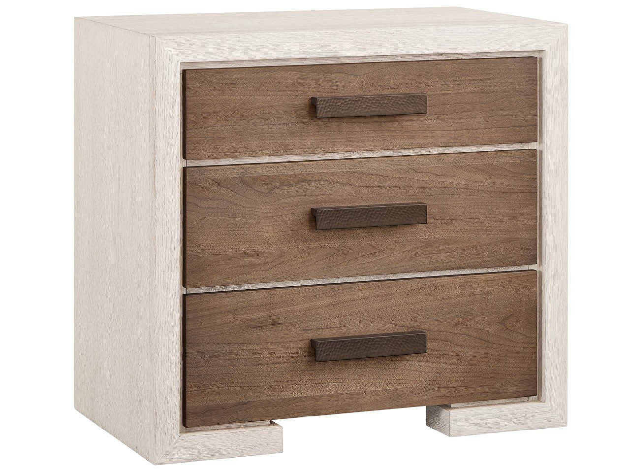 With a subtle two-tone presentation, the Mist Nightstand perfects the art of bedside minimalism in light, sandblasted Mist Oak. Its three drawers with Haze-finished fronts provide a touch of organic movement and easy-access storage for a truly refined aesthetic.