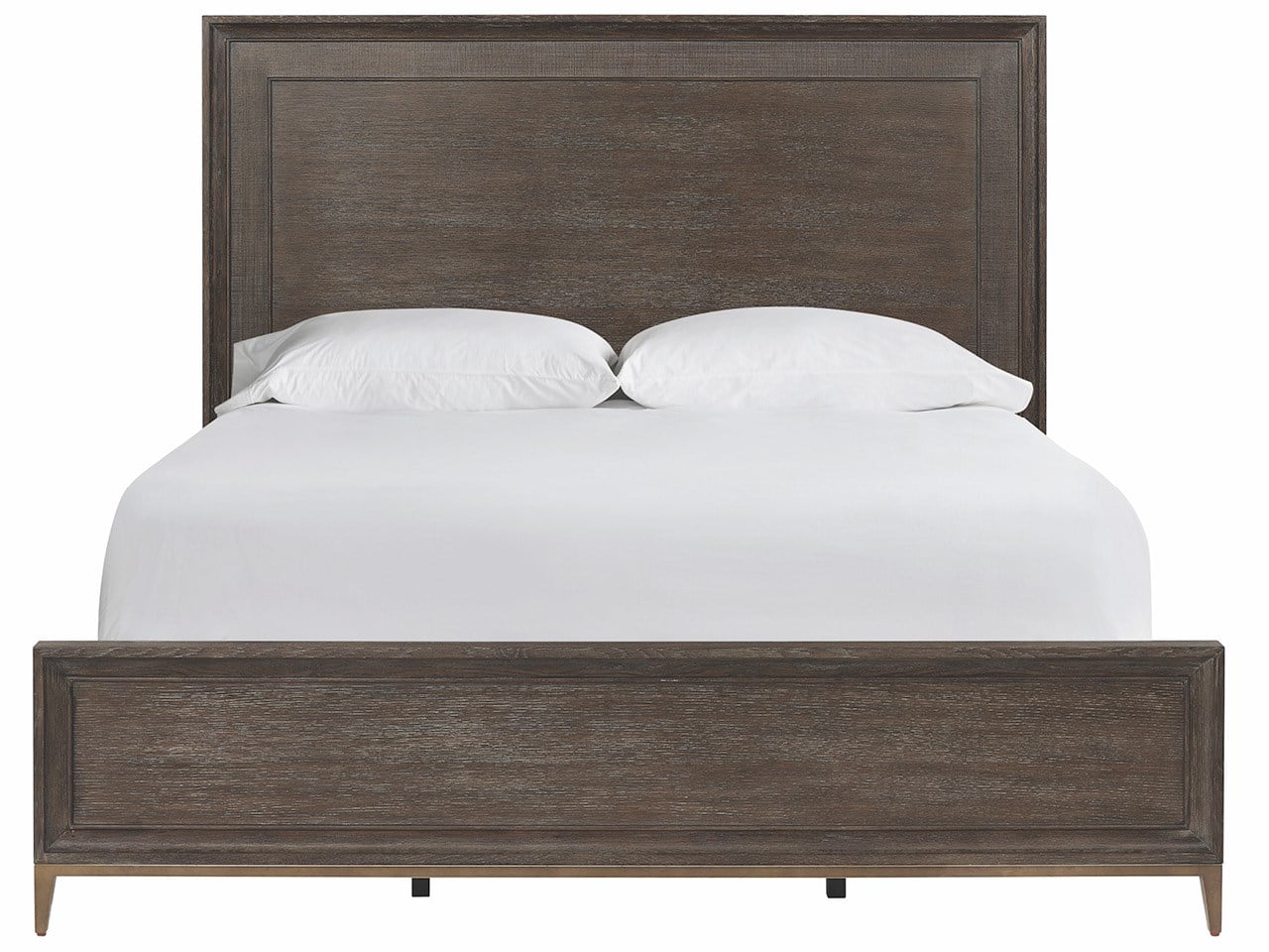 The Montclair Panel Bed offers a contemporary interpretation of traditional panel construction with an innovative inset band in Embossed Cocoa finish. Rich Cocoa framing provides elegant contrast while the metal footboard support with tapered legs adds sophisticated modern appeal.