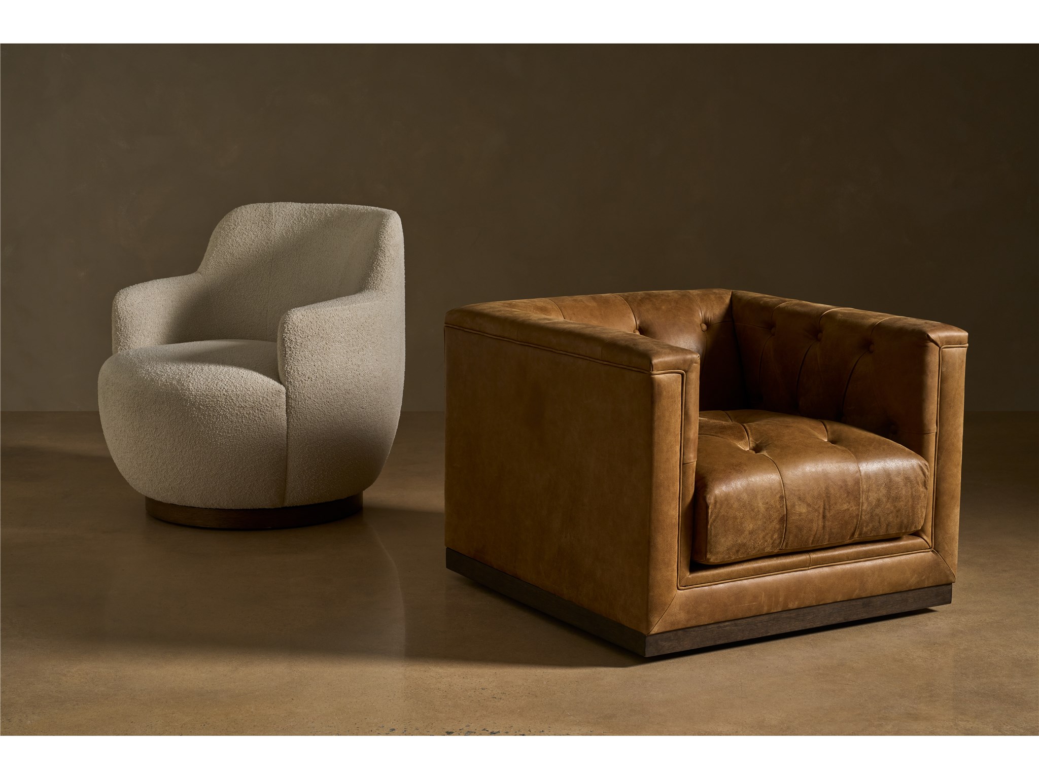 Quinn Swivel Chair (U538503-1771-2) Winchester Sycamore Leather; 8 mm Welt cord piping; Leg finish: Sable  Quinn Swivel Chair Chairs Swivel Chairs Living Room U538503-1771-2