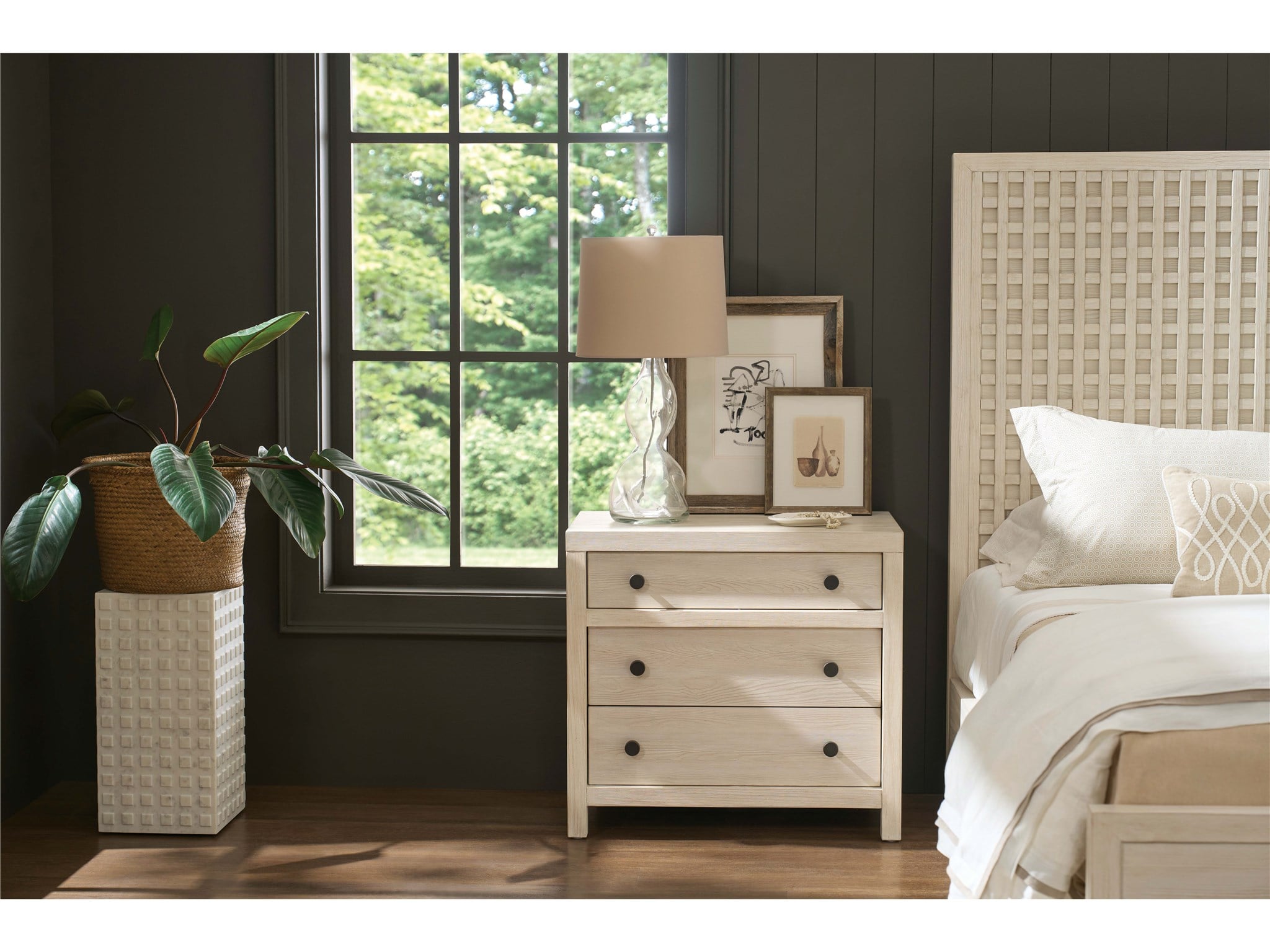 Dwell River Rock Three Drawer Nightstand (U462A355)The River Rock Three Drawer Nightstand offers essential bedside storage with a touch of understated elegance. Finished in a light and airy River Rock, its classic design and three spacious drawers provide practical organization. This nightstand seamlessly blends functionality and style, enhancing your bedroom with a refined, architectural touch.DwellNightstandsBedroomU462A355