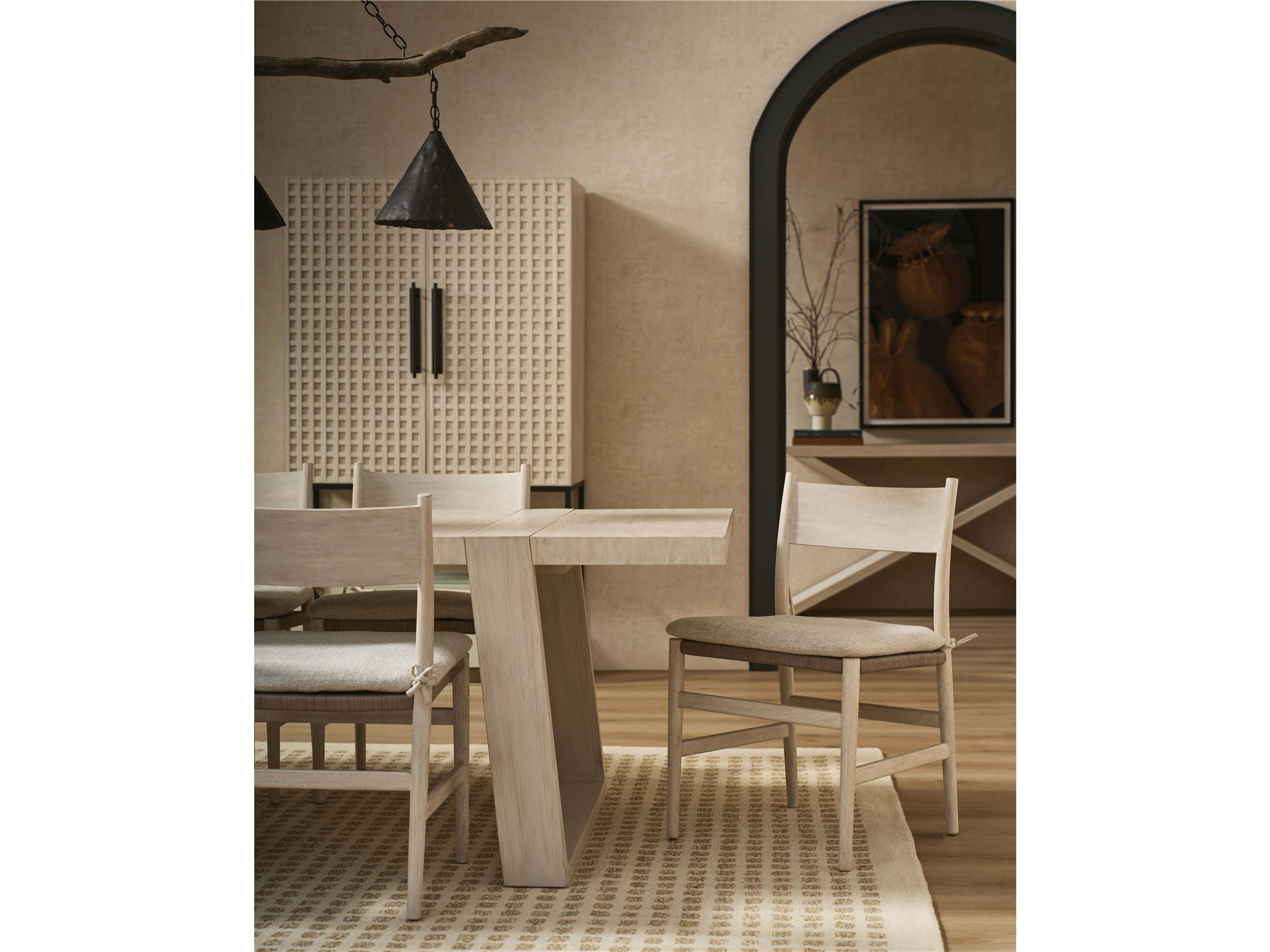 Dwell River Rock Wood Back Side Chair (U462A626)The River Rock Wood Back Side Chair combines classic design with a modern twist. Featuring a woven nylon seat for added durability and a light and airy River Rock finish, its clean lines and simple silhouette bring a touch of casual elegance to your dining space. The chair's comfortable design and natural wood finish create a welcoming and stylish seating option.DwellDining SeatingSide ChairsDining RoomU462A626