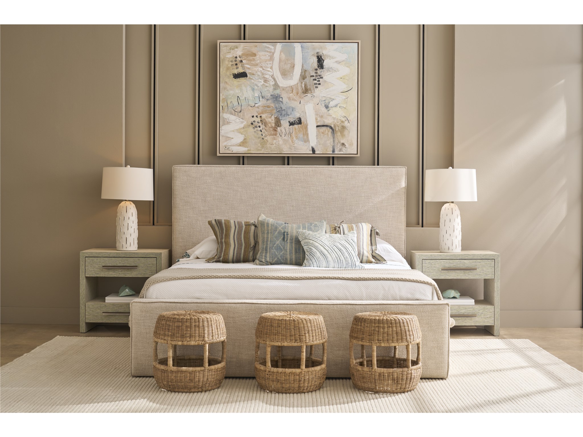 Oasis- Coastal Living Home Collection Seascape Nightstand (U533B361)The Seascape Nightstand combines closed storage with an open shelf space, all wrapped in textured Seascape grasscloth wallpaper. This perfectly proportioned nightstand offers the perfect balance of surface area and storage while bringing rich texture to your coastal bedroom.Oasis- Coastal Living Home CollectionChestsBedroomU533B361