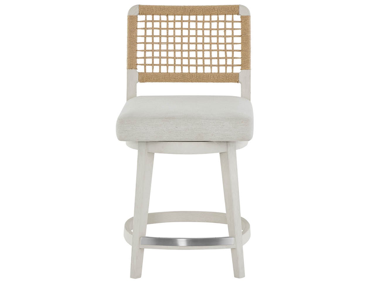 Oasis- Coastal Living Home Collection Shoreline Swivel Counter Stool (U533A604)The Shoreline Swivel Counter Stool combines a Danish cord woven backrest with a comfortable Crypton Nomad Snow upholstered seat on a swivel base. This counter-height stool features a crisp Shoreline white finish and brushed stainless steel footplate, creating a perfect blend of coastal style and modern functionality.Oasis- Coastal Living Home CollectionDining SeatingCounter Height ChairsDining RoomU533A604