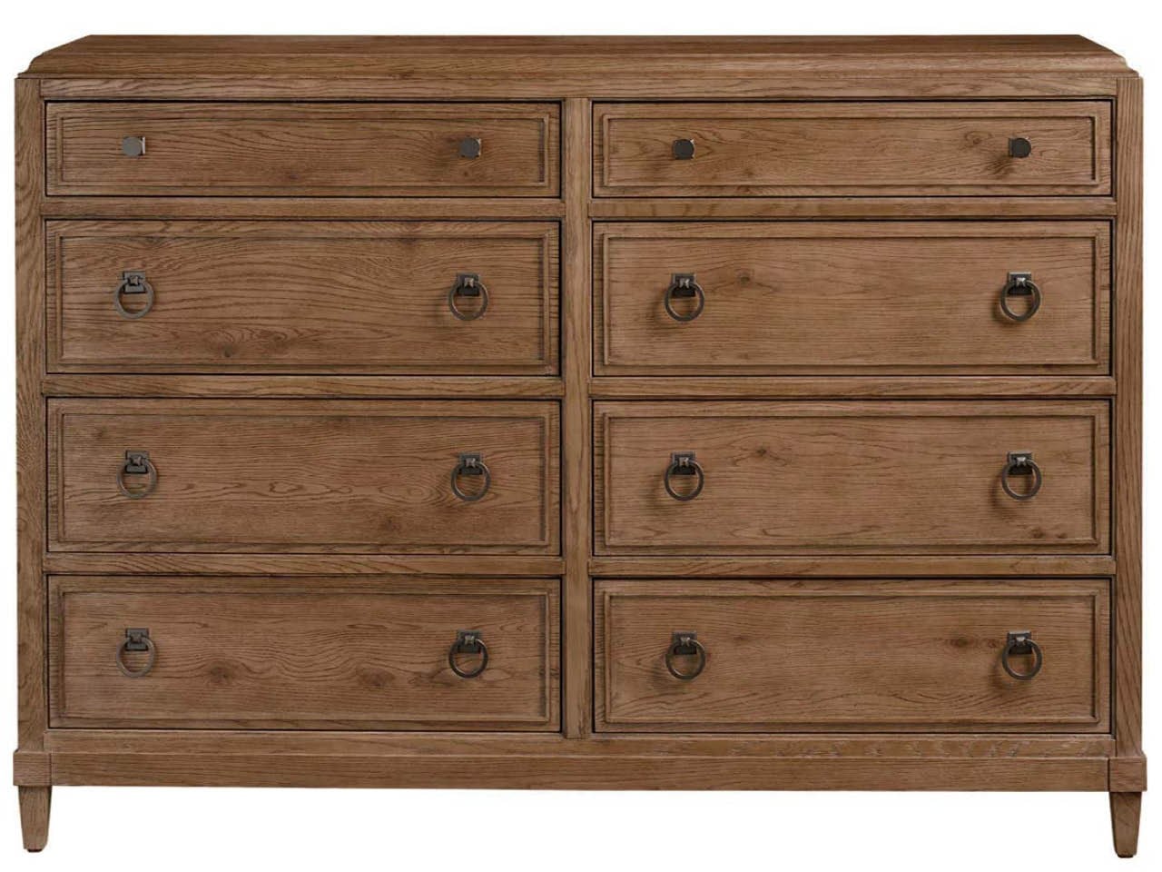 The Sienna Chest offers ample storage and a touch of modern rusticity. Its medium-hued Sienna finish and metal ring pulls create a warm and inviting aesthetic. The six larger drawers provide generous storage space, while the two smaller drawers are perfect for finer accessories.