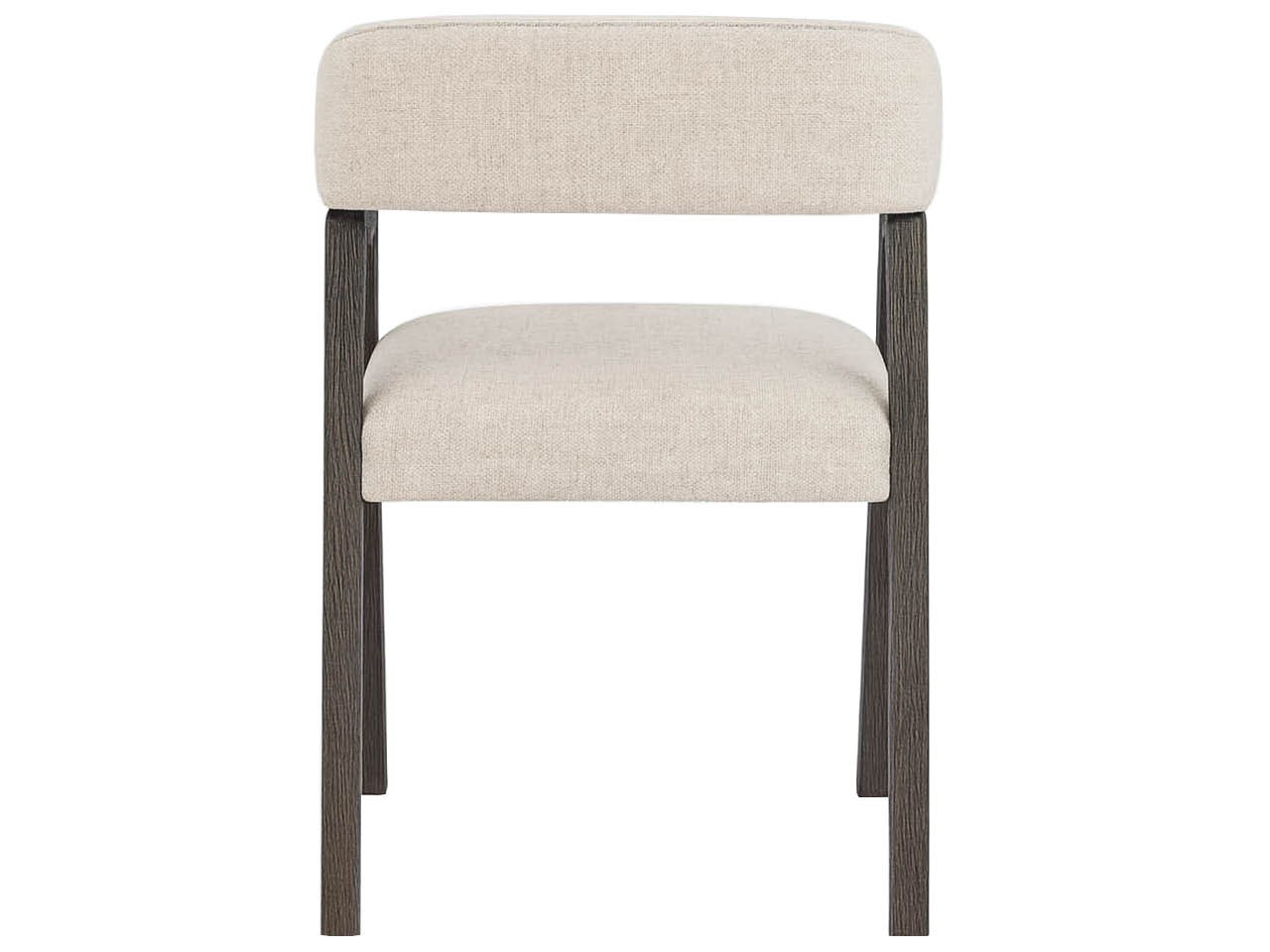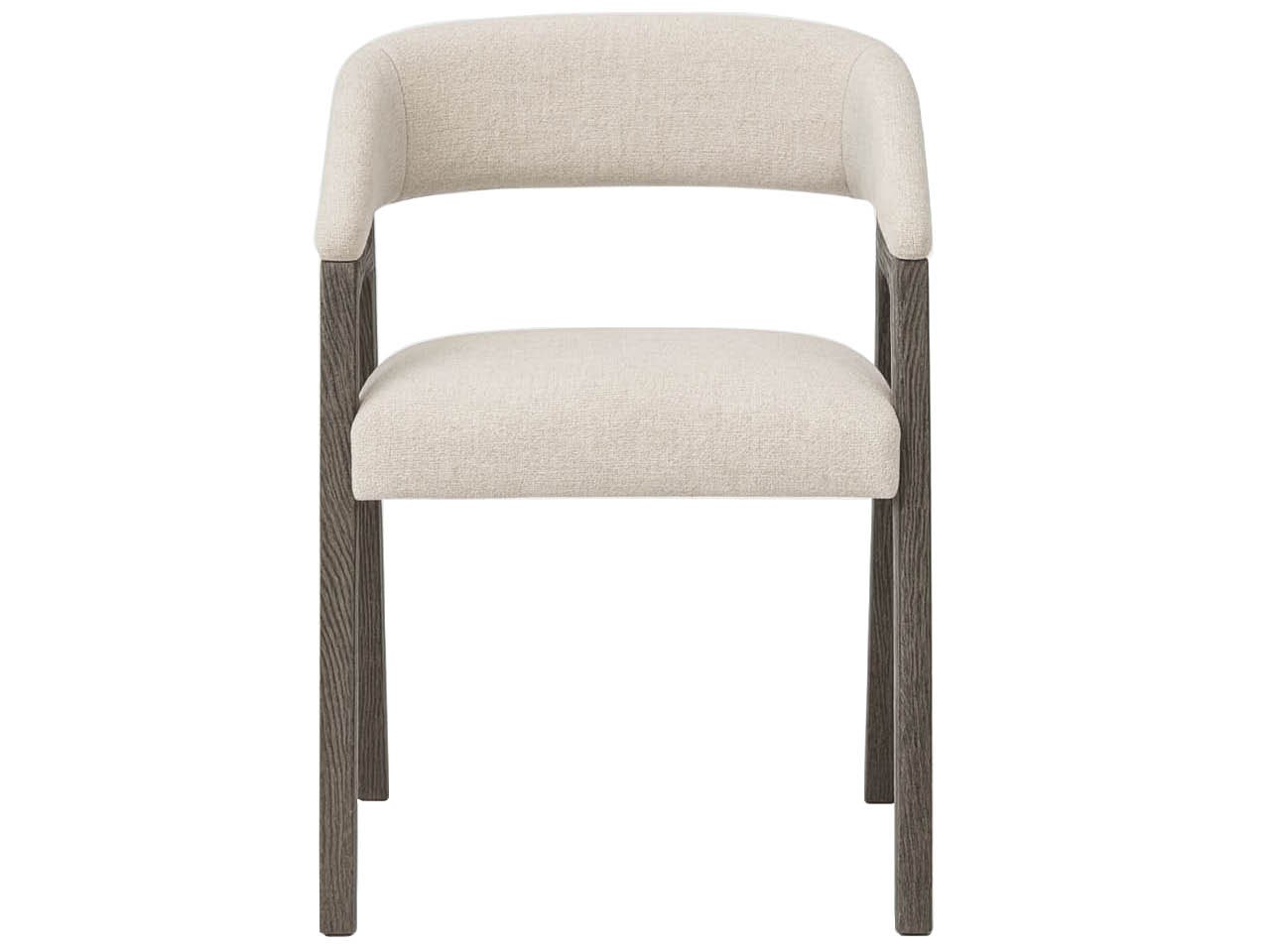 The Veil Dining Chair features a barrel-back silhouette with a Veil Oak frame, fully wrapped in luxurious Levi Oyster fabric. This piece offers deep, tactile comfort and commands a sophisticated presence at the table.
