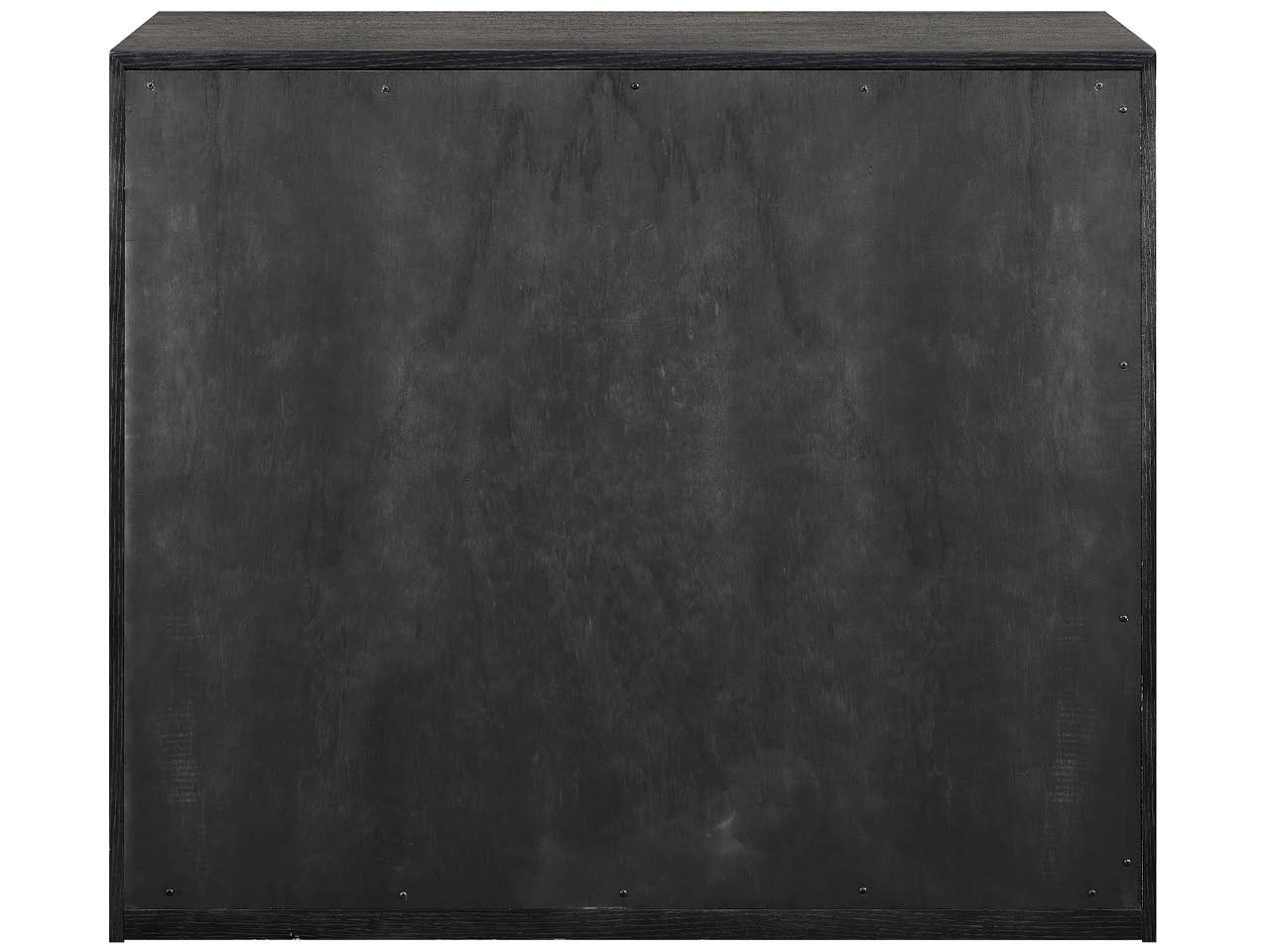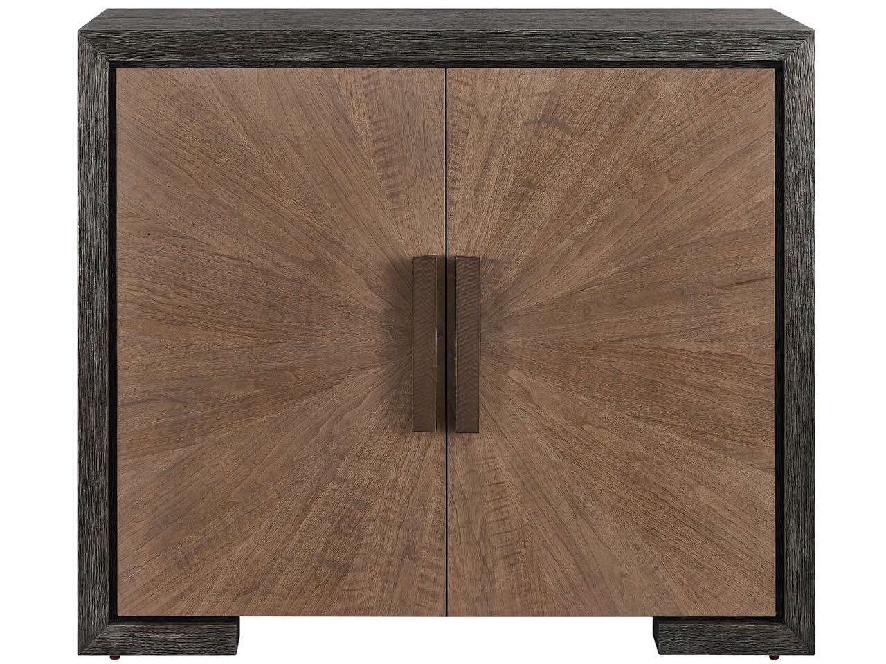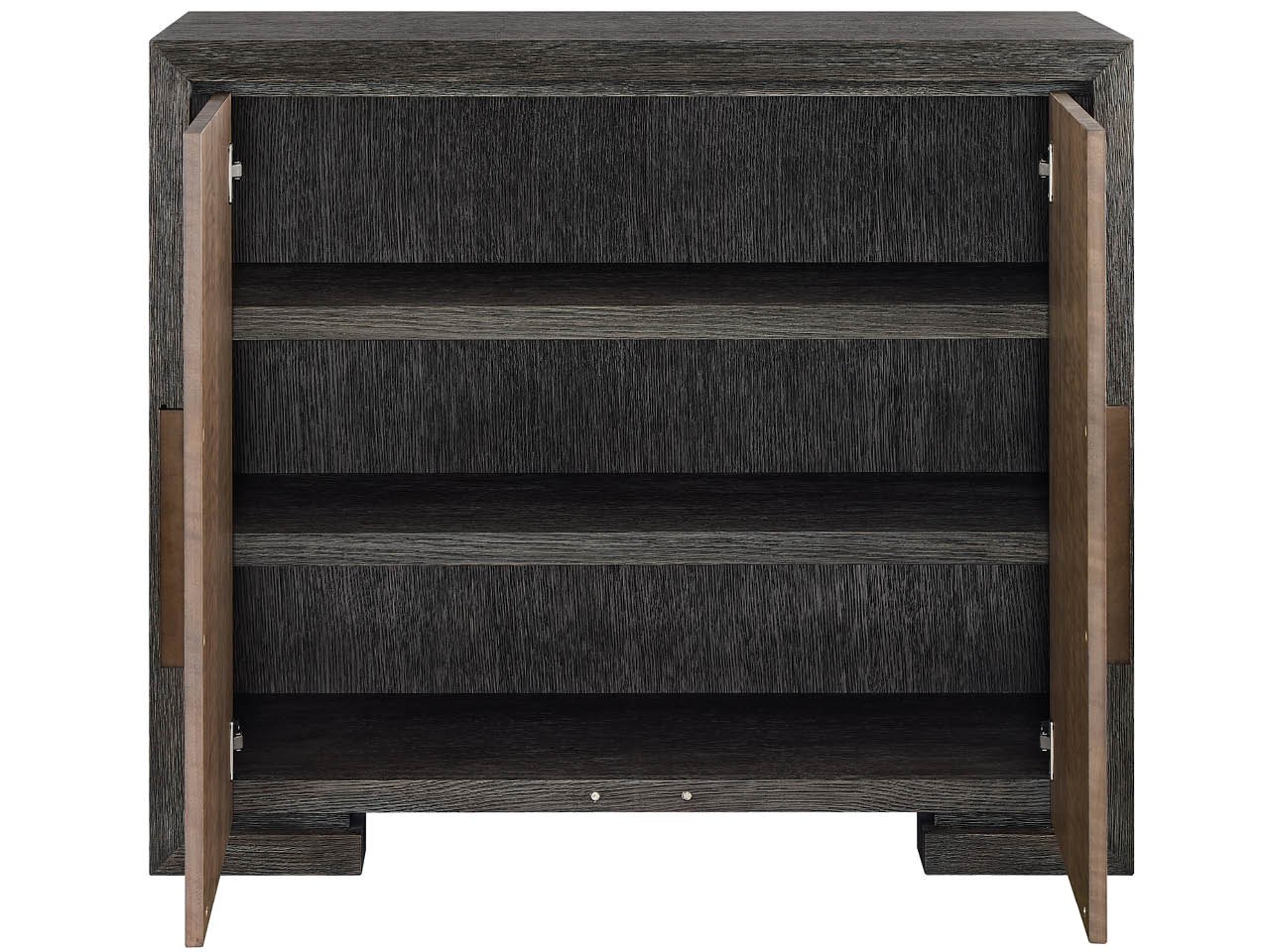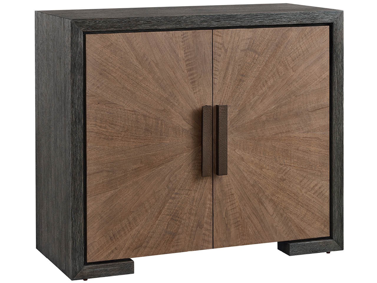 The Veil Hall Chest is a two-door storage cabinet featuring a deep Veil Oak case and figured Haze Walnut doors. This stately piece provides substantial storage and grounding design for any room.